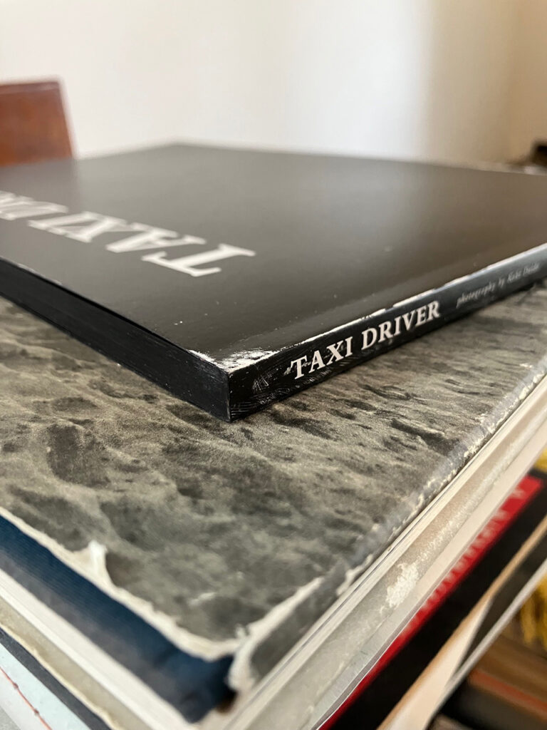 There is no real “cover” to the photo collection titled TAXI DRIVER—instead it’s covered in scratches and scrapes (or, more accurately, they’re printed on). TAXI DRIVER is based on a handmade book produced by Koki Daido a number of years ago. As the book exchanged hands and was carried about, it naturally developed these scrapes and scratches and they were preserved for this edition of the book.