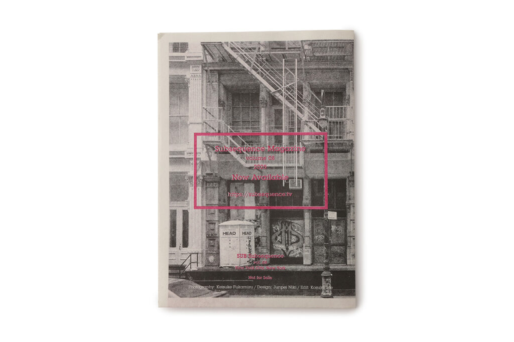 “SUB Subsequence” is a photo ZINE that has been included as an addition for each issue since we published the inaugural issue of the magazine. It is printed using a RISOGRAPH (A digital printer that operates on stencil printing technology created by RISO KAGAKU CORPORATION in 1980) consisting of photos taken for articles published in the magazine that do not get used in the printed version. This iteration showcases photos taken during the interviews that took place on site for the story titled, “Preserving Homes in New York: The Fluxus Dream of an Artists’ Co-op”, featured in vol. 8 of the magazine. Also included as part of the ZINE is a special A3 size tri-fold insert that becomes a mini poster. “SUB Subsequence” will be distributed to those who purchase a copy of Subsequence vol. 8 from the official webstore. Available while supplies last.