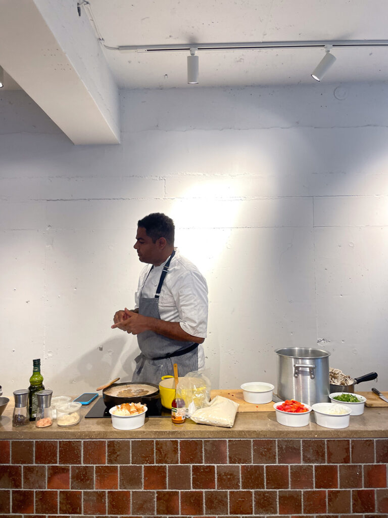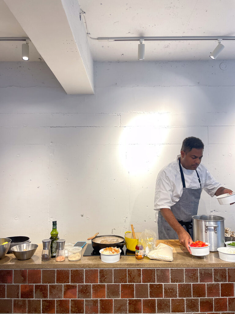 On the day of the meal, we first headed to the fish market. Thiago, who arrived slightly earlier than our agreed meeting time, was full of energy as he went around the store. He quickly assessed the ingredients’ numbers and flavors in his head, checked the fish’s weight and quality with his hands, and scratched out the cooking schedule with his toe. The fish found in the Pacific Ocean are different to those the fishers of Recife find in the Atlantic. With a keen eye, Thiago checks the fish, seaweed, shells, and small fry—it’s as if this trip to Japan has opened another door of culinary possibility within him.